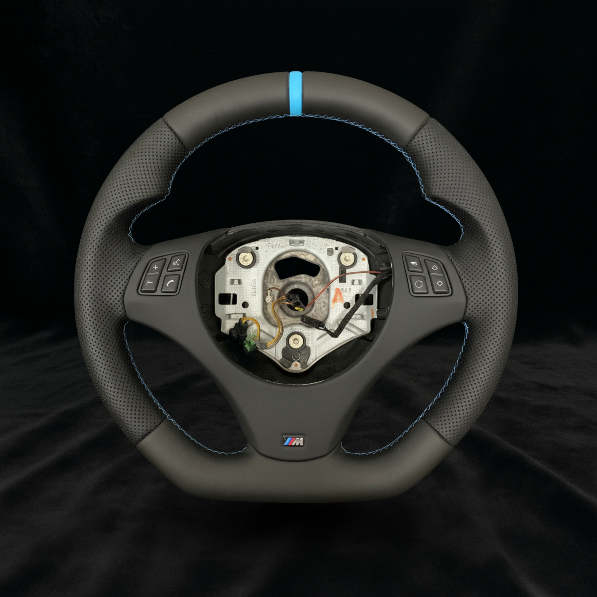 BMW E9xx Skinn Ratt med Blå Detaljer