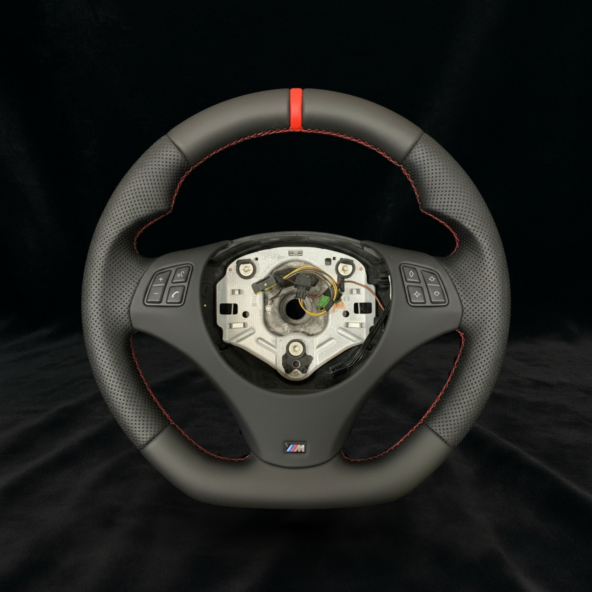 Gi interiøret i din BMW E9x et mer aggressivt og sportslig uttrykk med dette premium skinnrattet med røde detaljer. Perfekt for entusiaster som ønsker et tydelig motorsport-preg kombinert med OEM-komfort og kvalitet.